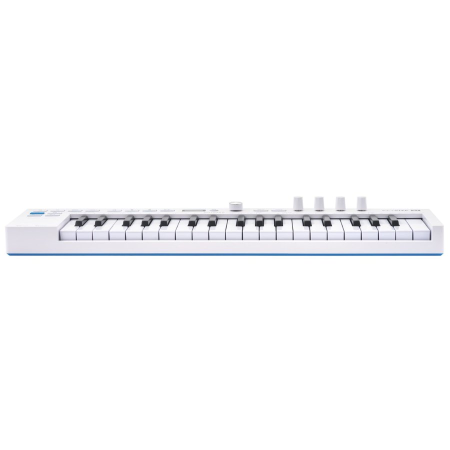 Dispone de pantalla OLED clara, 4 encoders asignables y una tira de LEDs sobre el teclado que facilita la navegación por escalas, progresiones y patrones. Todo está diseñado para trabajar de forma rápida y visual.