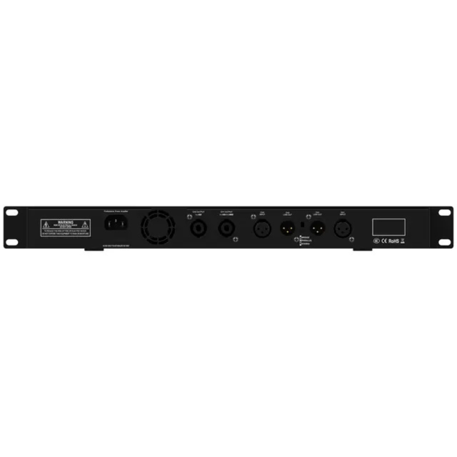 Con tan solo 1 unidad de rack (1U) y 3,7 kg de peso, este amplificador es perfecto para instalaciones móviles, equipos de alquiler o espacios reducidos. Su ventilación forzada mantiene la temperatura óptima incluso en uso prolongado.
