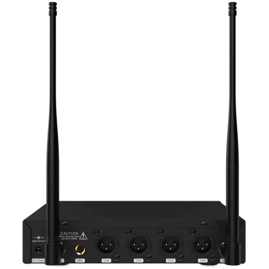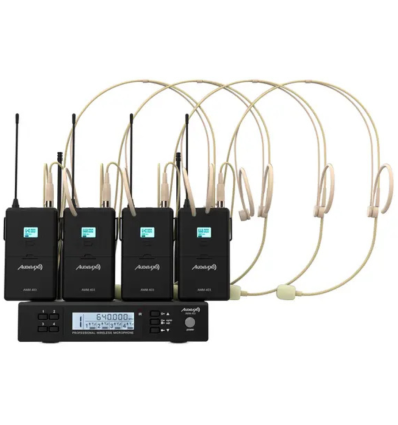 El Audibax AWM 403 está diseñado para ofrecer un sistema inalámbrico completo y fiable para múltiples usuarios. Consta de un receptor de cuatro canales y cuatro petacas transmisoras con micrófonos de diadema tipo condensador. Ofrece excelente rendimiento tanto en voz hablada como cantada, ideal para conferencias, formaciones, obras de teatro, clases, espectáculos y más.