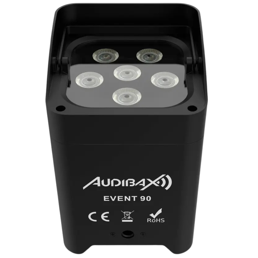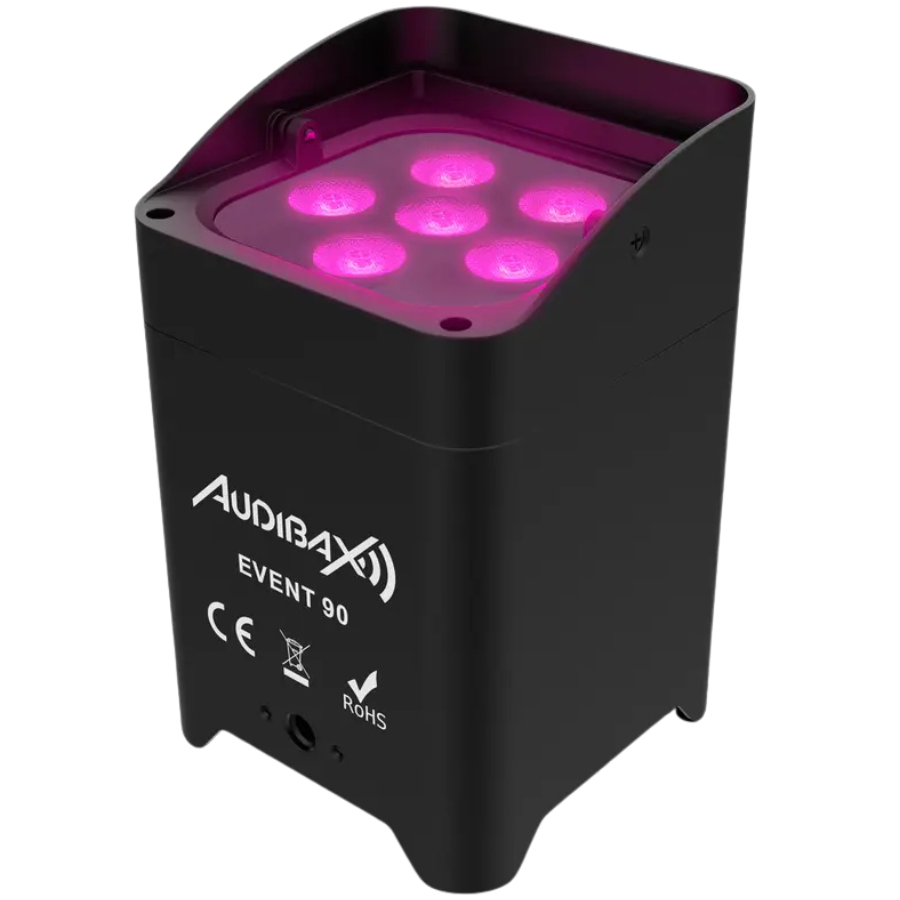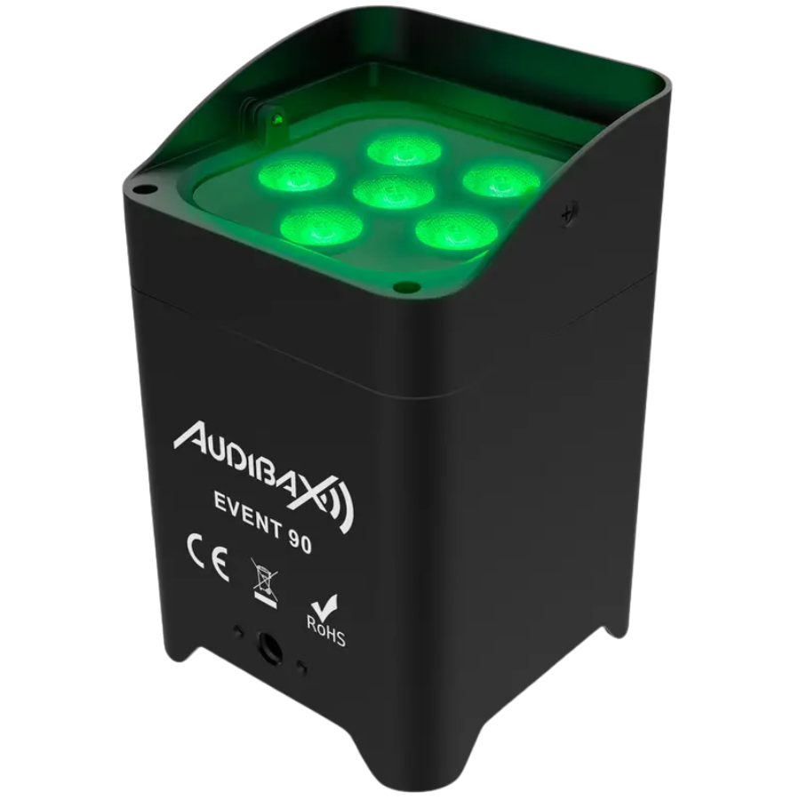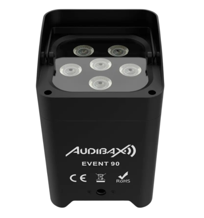 El Audibax Event 90 es un foco wash arquitectural de alto rendimiento equipado con batería integrada y control inalámbrico WiFi, ideal para DJs, iluminación de eventos y ambientación profesional. Con 6 LED de 15 W (RGBWA+UV), ángulo de apertura de 40º, modos de control DMX (6 o 10 canales), configuración via app y una duración de batería estimada en 4‑5 horas, permite iluminar paredes, elementos arquitectónicos o espacios sin depender de toma de corriente. Un producto versátil, moderno y perfecto para instalaciones rápidas o uso móvil.