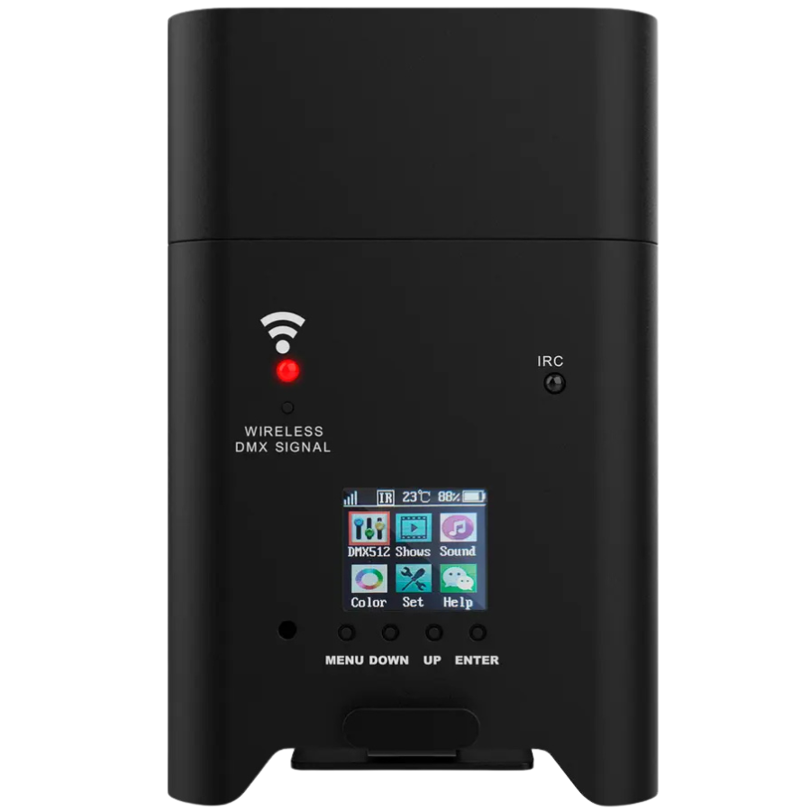 El Event 90 permite control vía app móvil (iOS/Android) mediante WiFi, desde donde se pueden gestionar color, intensidad, macros predefinidas, estroboscopio, modos automáticos o control por sonido. También dispone de control DMX512 en modo cableado (6 ó 10 canales) para integración en instalaciones profesionales o rack tradicional. Las funciones de Maestro/Esclavo, Sonido/Auto añaden versatilidad al uso.