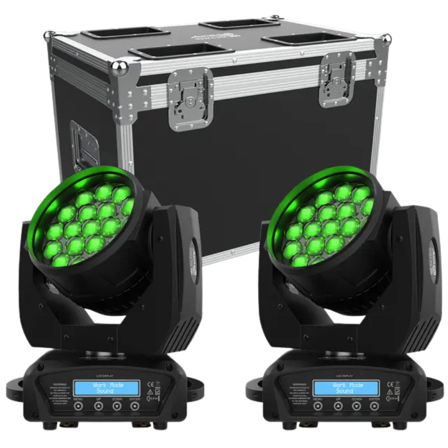 El kit Audibax Iowa Pix 300 (pareja) + Flight Case es la solución ideal para DJs y profesionales de la iluminación que buscan potencia, versatilidad y transporte seguro. Incluye dos cabezas móviles wash de 250 W cada una con 19 LED RGBW de 15 W y zoom motorizado de 7‑55°, además de un flight case doble a medida para llevarlo todo sin complicaciones. Con control DMX512 (15/23 canales), modos automático, sonido y maestro‑esclavo, ofrece efectos dinámicos en giras, discotecas o eventos móviles. Una inversión segura para destacar tu show y trasladarlo con total protección.