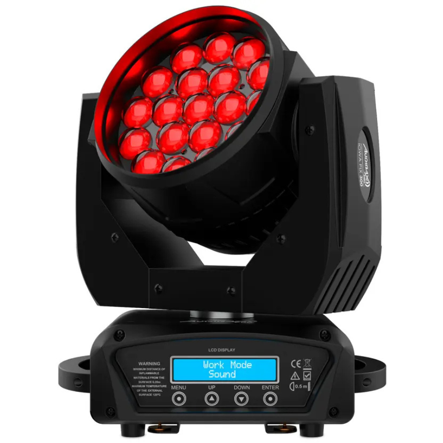 La Audibax Iowa Pix 300 es una cabeza móvil wash de última generación diseñada para ofrecer un espectacular rendimiento en entornos de eventos, discoteca y móviles. Con una potencia de 250 W y 19 LEDs Osram de 15 W tipo RGBW 4‑en‑1, cada unidad brinda una mezcla de color amplia (hasta 16,7 millones de combinaciones) que permite ambientar cualquier espacio con intensidad y estilo.