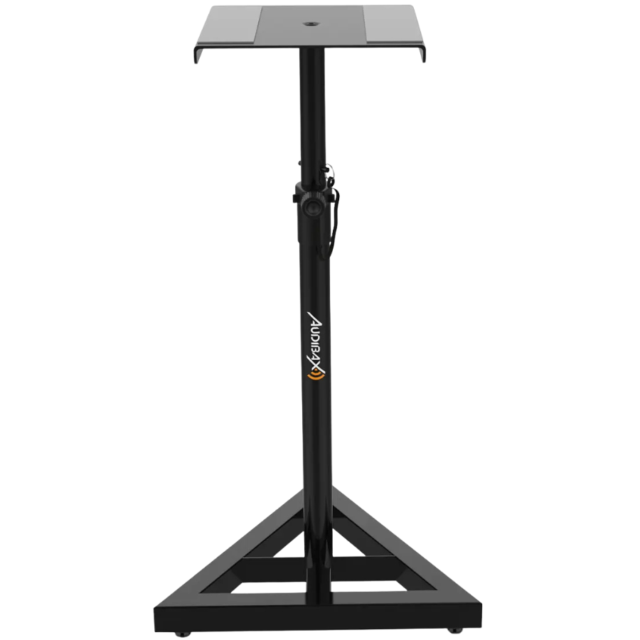 El soporte de suelo Audibax NEO SM1 está diseñado para monitores de estudio y altavoces compactos profesionales. Fabricado en acero negro, con altura regulable entre 76 y 130 cm, y capaz de soportar hasta 45 kg, cuenta con placa superior de 23 × 23 cm y base de apoyo de 45 cm, lo que garantiza gran estabilidad. Ideal para montar tus altavoces en estudio, cabina móvil o espacio de producción, optimizando la acústica y posición de escucha.