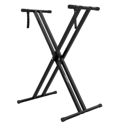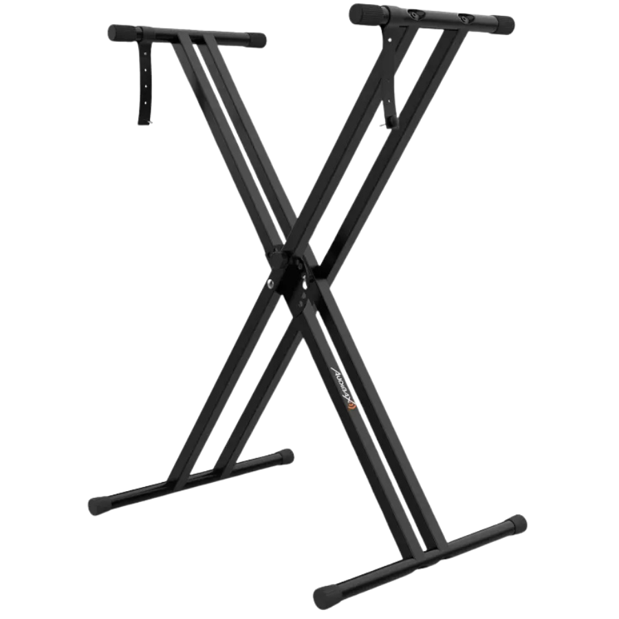 El Audibax Onyx 120 es un soporte profesional tipo “tijera doble” diseñado para ofrecer máxima seguridad y versatilidad a tecladistas, tanto en estudio como en directo. Su estructura de doble X proporciona firmeza, mientras que su regulación en altura se adapta a tocar de pie o sentado.