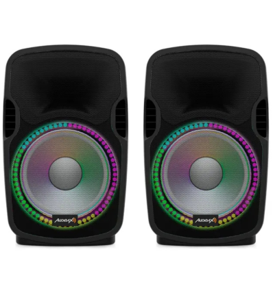 El Audibax Party 212 LED Set incluye dos altavoces de 12 pulgadas (activo y pasivo), diseñados para DJs y eventos. Con 400 W RMS de potencia, conectividad Bluetooth, USB/SD y efectos LED RGB, es una solución completa y visualmente impactante. Incluye soportes, micrófono y control remoto. Ideal para fiestas, eventos o sesiones móviles con sonido potente y montaje rápido.