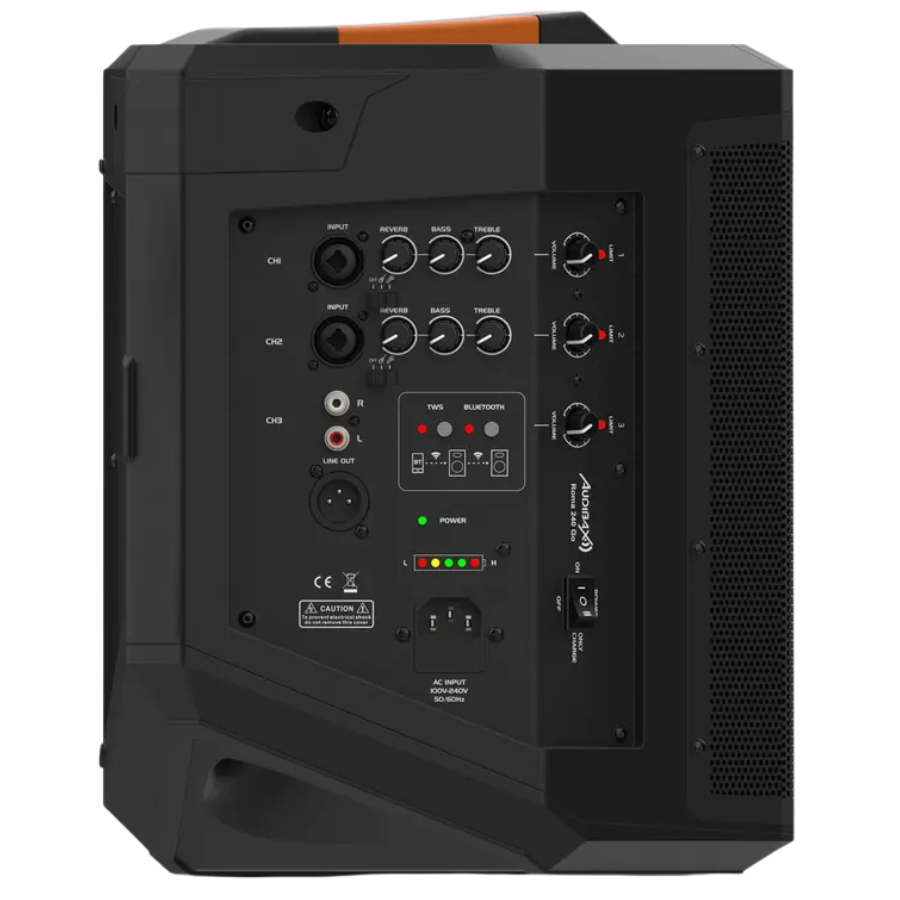 El Audibax Roma 240 Go es un sistema PA portátil con batería recargable y conectividad Bluetooth, ideal para DJs, músicos y presentadores. Ofrece 120 W RMS / 240 W pico, mezclador de 3 canales, entradas micro/línea y función TWS para sonido estéreo sin cables. Con un peso ligero y montaje en poste, es perfecto para eventos móviles y sesiones al aire libre.