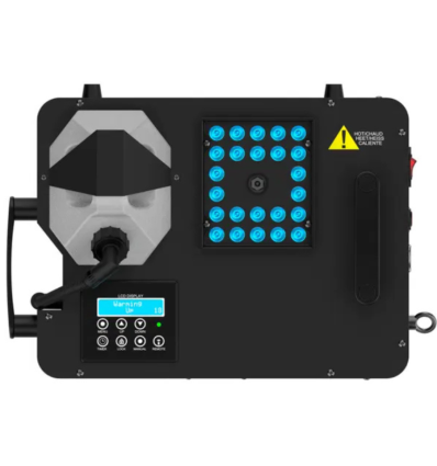 La Audibax Smoke Geyser 2000 RGB es una máquina de humo profesional de 2000 W con iluminación LED integrada RGB, diseñada para crear columnas de humo densas con efectos visuales impactantes. Con una salida de hasta 25 000 cfm (700 m³/min), tanque de 2,5 L y consumo de 150 ml/min, permite generar efectos de humo intensos y continuos durante eventos, conciertos o fiestas. Su diseño robusto admite montaje vertical u horizontal, con tanque reversible. Además cuenta con control remoto inalámbrico, control por DMX y temporizador programable, ideal para instalaciones fijas o móviles.
