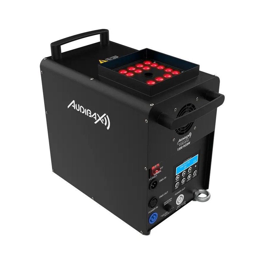 La Audibax Volcano 1500 RGBW es una máquina de humo semiprofesional que ofrece alto rendimiento y efectos visuales sorprendentes. Diseñada para DJs, clubs y eventos en vivo, combina un generador de humo de 1500 W con 24 LED RGBW de 10 W cada uno, creando efectos tipo CO2 de gran impacto.
