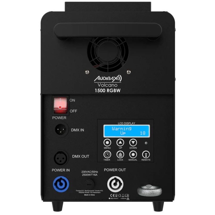 La Audibax Volcano 1500 RGBW es una potente máquina de humo profesional de 1500 W con 24 LED RGBW integrados (240 W) que permite crear columnas de humo iluminadas en vertical u horizontal. Ideal para DJs, discotecas y eventos que buscan un efecto CO2 visualmente impactante. Su depósito de 3,5 litros ofrece autonomía prolongada y su caudal de 530 m³/min garantiza una cobertura intensa. Incorpora pantalla digital, modos DMX, automático y mando IR, lo que facilita su integración en cualquier espectáculo o cabina. Robusta, versátil y fácil de usar, es perfecta para eventos que exigen profesionalidad y espectacularidad.