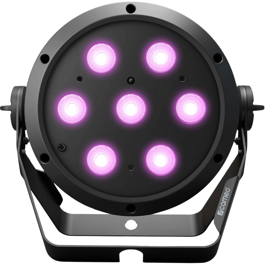 El Cameo ROOT® PAR IP es un foco LED versátil y robusto, ideal para eventos al aire libre gracias a su protección IP65. Equipado con 7 LEDs RGBW de 8W, ofrece una potencia lumínica de 3.000 lúmenes y un ángulo de haz de 30°. Su pie ajustable permite modificar fácilmente la inclinación sin soportes adicionales. Compatible con control DMX y funciones...