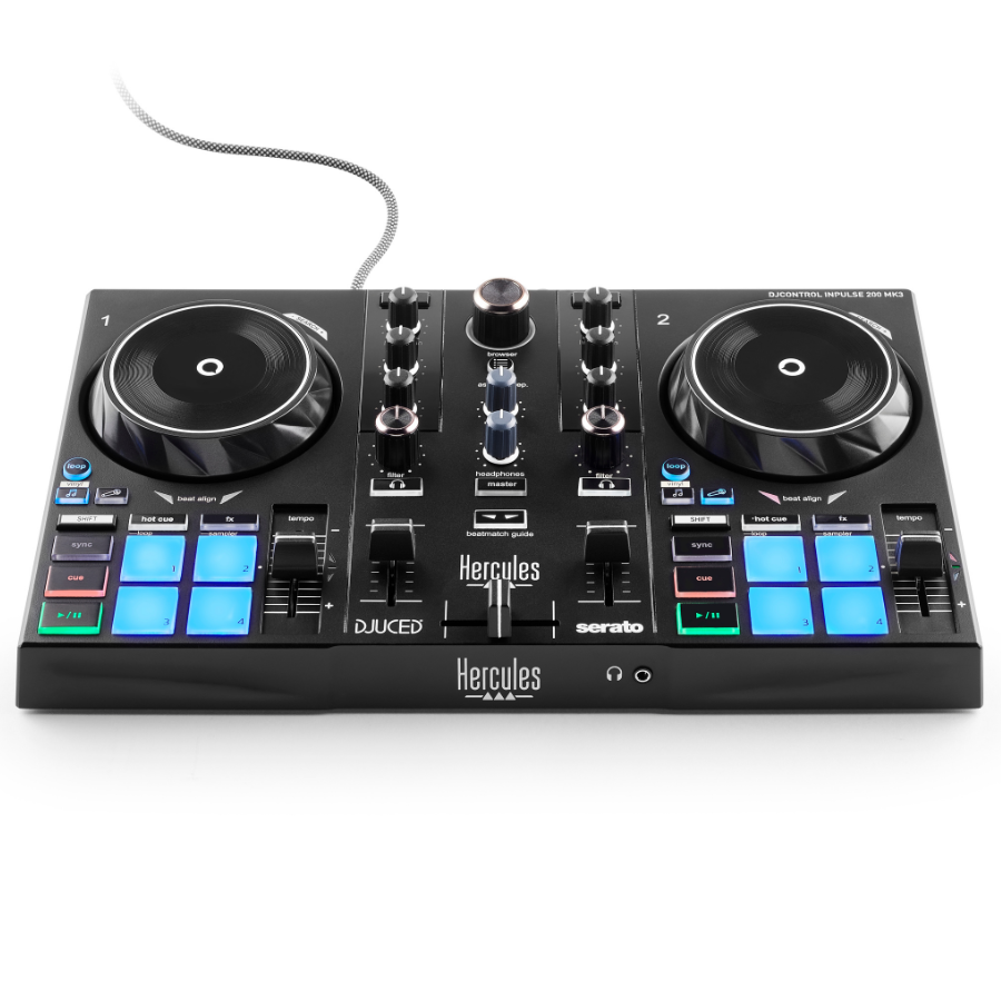 La Controladora HERCULES DJCONTROL INPULSE 500 está diseñada para ayudarte a iniciarte en el mundo del DJing y refinar tus habilidades. Con numerosas funciones geniales, como efectos personalizables, pies retráctiles sólidos, y una base retroiluminada, la DJControl Inpulse 500 es la elección perfecta para los amantes de la música