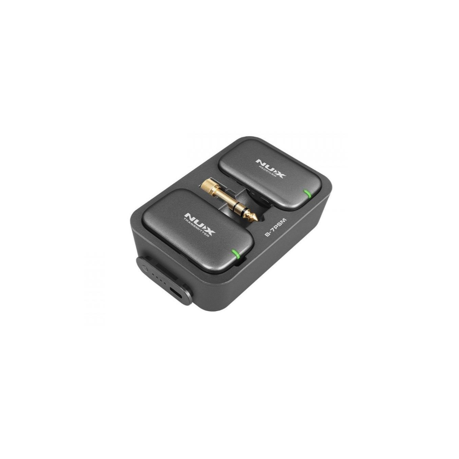 Nux B-5RC es un sistema inalámbrico digital que transmite en 2.4 GHz. No usa pilas y es ideal para ensayos o directos en salas de medio aforo. Se puede usar tanto con guitarras con pastillas pasivas como activas.