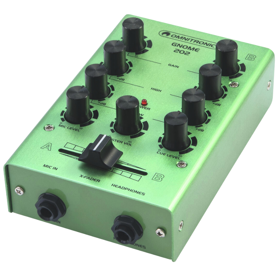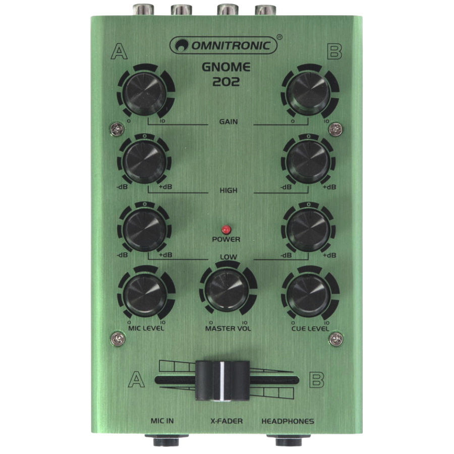 El OMNITRONIC GNOME‑202 Mini Mixer Gold es un mezclador DJ compacto de 2 canales con carcasa metálica dorada. Incorpora entradas para línea y micrófono, EQ de 2 bandas por canal, salidas para grabación y auriculares, y crossfader. Su diseño portátil lo convierte en una herramienta ideal para DJs principiantes, estudios caseros o aplicaciones móviles donde...