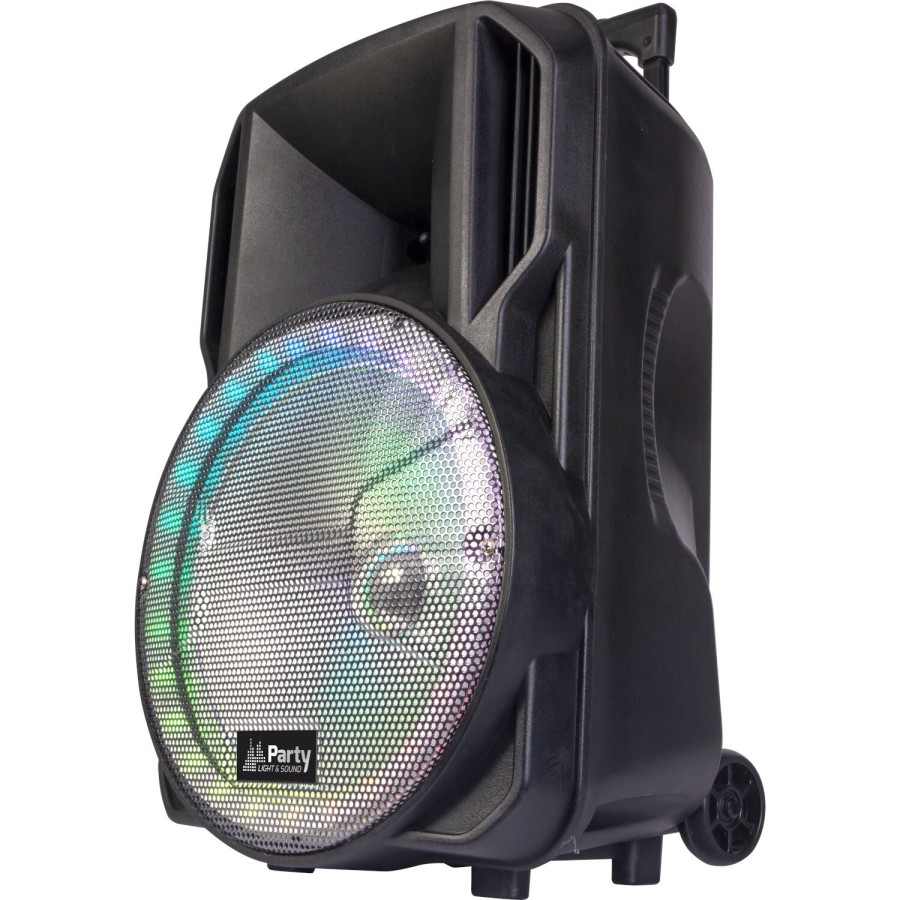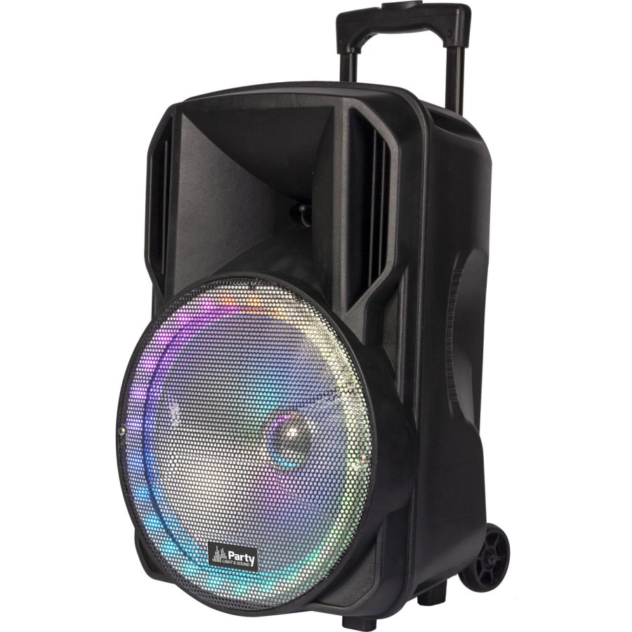 ¡Fiesta garantizada con el Bafle Portátil 12’’ Party 12RGB! Potente sonido de 700W, micro VHF inalámbrico, correcciones de sonido, y batería recargable. Llévalo con su trolley telescópico y disfruta de la música en cualquier lugar.