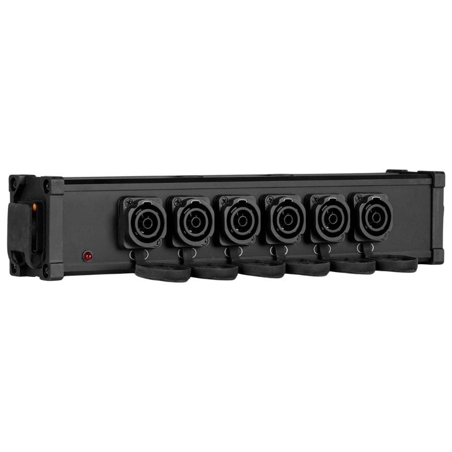 Con 1 entrada Powercon True1 y 7 salidas, permite alimentar múltiples dispositivos desde una sola fuente eléctrica, simplificando el cableado y mejorando la organización del montaje.