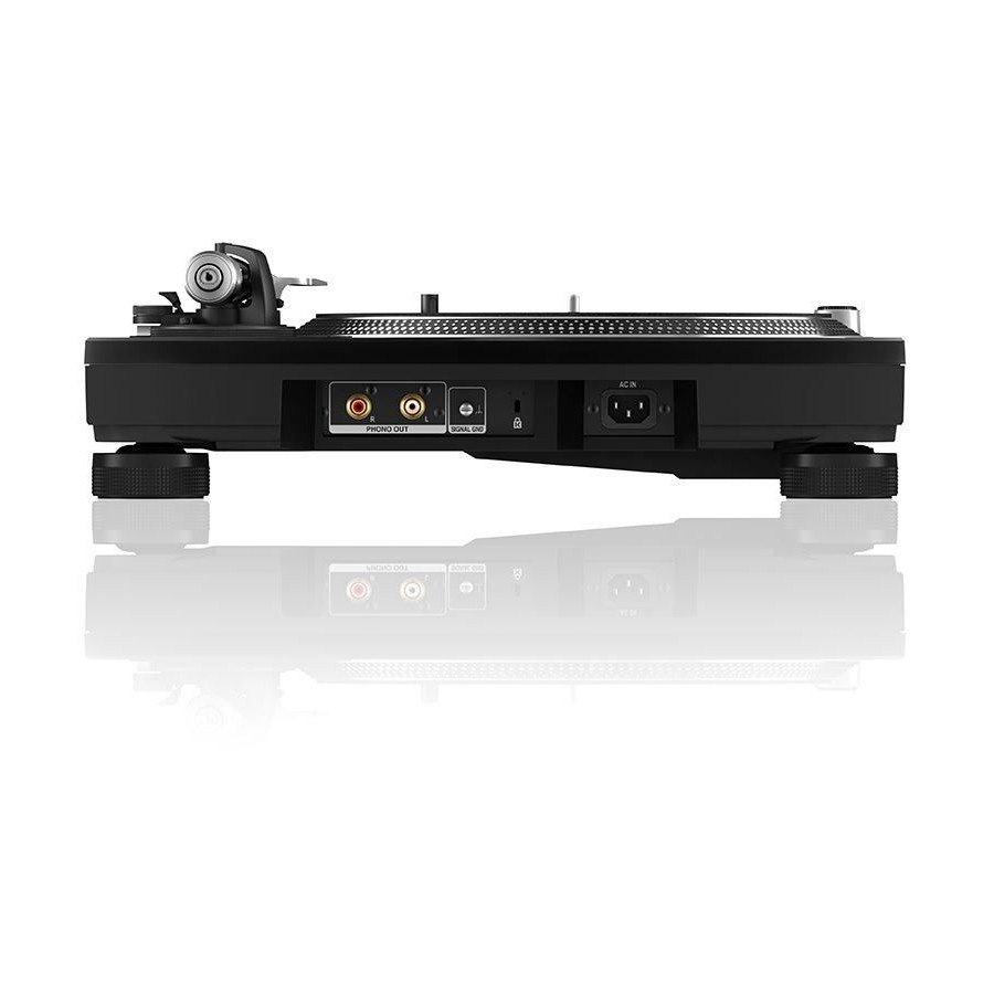 - El cuerpo del reproductor está estructurado de manera que los cables no sobresalgan más allá de sus dimensiones exteriores, teniendo en cuenta el posicionamiento de delante hacia atrás cuando coloca la parte posterior del giradiscos, con sus terminales de conexión, junto a un mezclador.