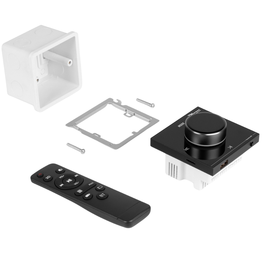 El Power Dynamics Powerline B100BSET es un sistema de sonido empotrable ideal para ambientar hogares, oficinas o negocios. Incluye un amplificador digital de 4 x 25 W RMS que se instala en pared con un elegante panel táctil y pantalla LCD. Incorpora conectividad Bluetooth 5.0, reproductor MP3 por USB y microSD, entrada AUX y salida de línea. El set...