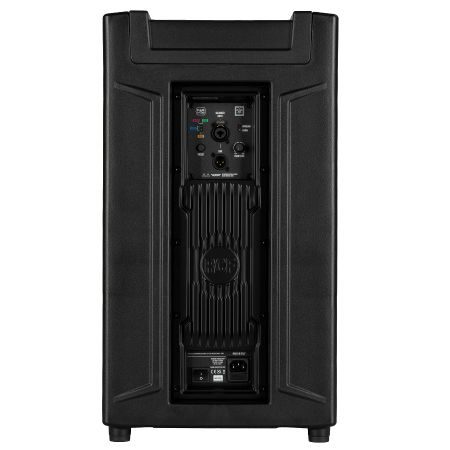 El woofer de 12” de precisión RCF, montado en un recinto bass-reflex, asegura bajos potentes y controlados, ideales para música electrónica, pop, rock y otros estilos donde el impacto del grave es fundamental. La tecnología Bass Motion Control evita distorsiones incluso a volúmenes elevados.