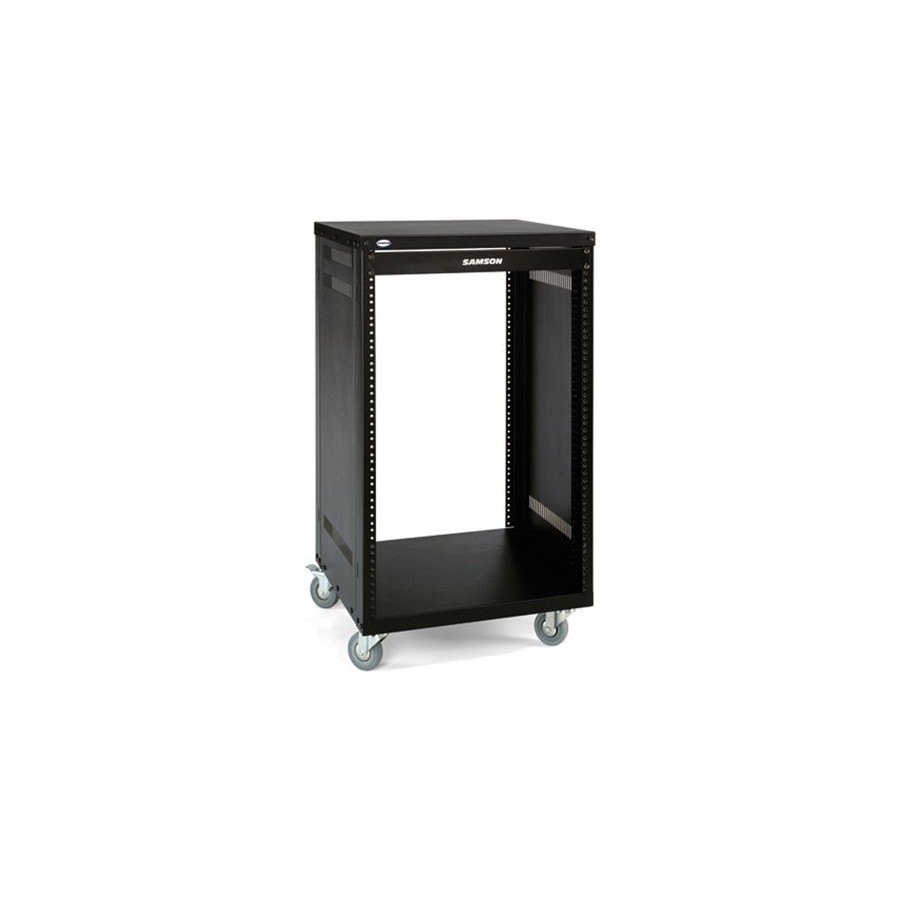 Samson Srk21 es un mueble rack metálico con ruedas de 21 espacios para facilitar el transporte y la instalación de equipos electrónicos.