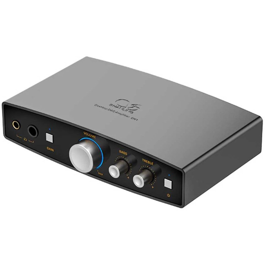 El Shanling EH1 negro es un DAC y amplificador de auriculares de escritorio con un diseño compacto, potente y elegante. Incorpora el chip Cirrus Logic CS43198 con soporte para audio de alta resolución hasta 32bit/768kHz y DSD512. Incluye salidas 6.35 mm y 4.4 mm balanceada con hasta 1015 mW de potencia, controles físicos de graves y agudos, salida RCA, coaxial y entrada USB‑C. Ideal para mejorar la calidad de sonido en entornos de escritorio exigentes.
