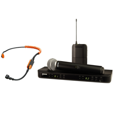 El SHURE BLX1288/SM35 K3E es un combo inalámbrico que combina un micrófono de mano SM58 y un micrófono de diadema SM35.