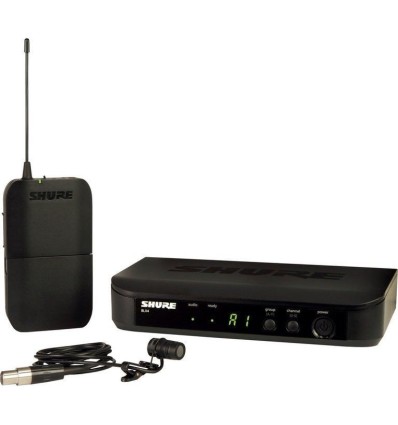 Sistema inalámbrico de solapa PRESENTER SM de hasta 12 frecuencias compatibles, compuesto por receptor enracable BLX4R, emisor de petaca BLX1 y cápsula de solapa WL185.