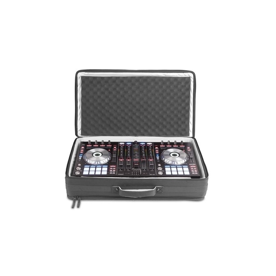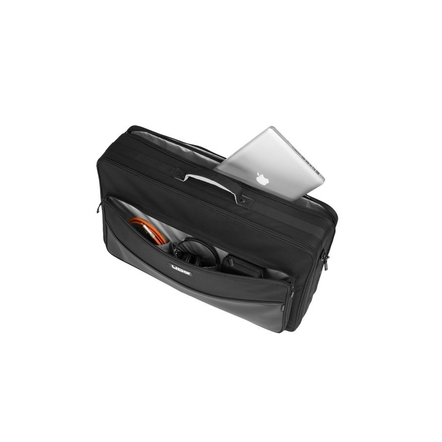 El compartimento principal esta reforzado con espuma de alta densidad tipo caja de huevo para la protección extra de los jogwheels, faders y botones. En las secciones auxiliares podrás llevar hasta dos ordenadores de 19'' uno junto al otro o un accesorio adicional como el soporte para ordenador de UDG.
