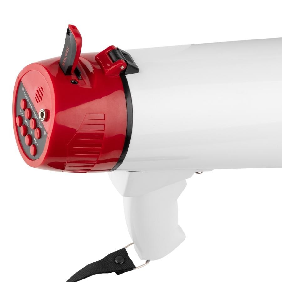¡Megáfono 60W LTC MEGA60USB! Amplifica tu voz con USB/SD, activación por voz, sirena y micrófono movible. Llévalo cómodamente con la bandolera. Alcance de hasta 600m. ¡Hazte escuchar con estilo!