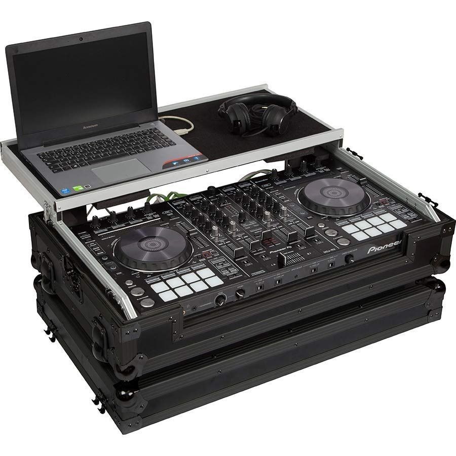 Maleta de transporte para controlador midi DJ de tamaño grande hasta 664 mm (w), con soporte -retráctil- para ordenador portátil, Ruedas empotradas y Asa-retráctil- tipo Trolley.